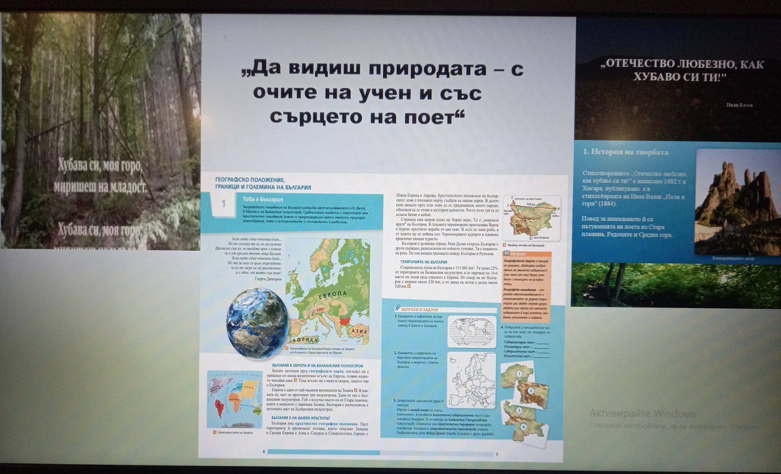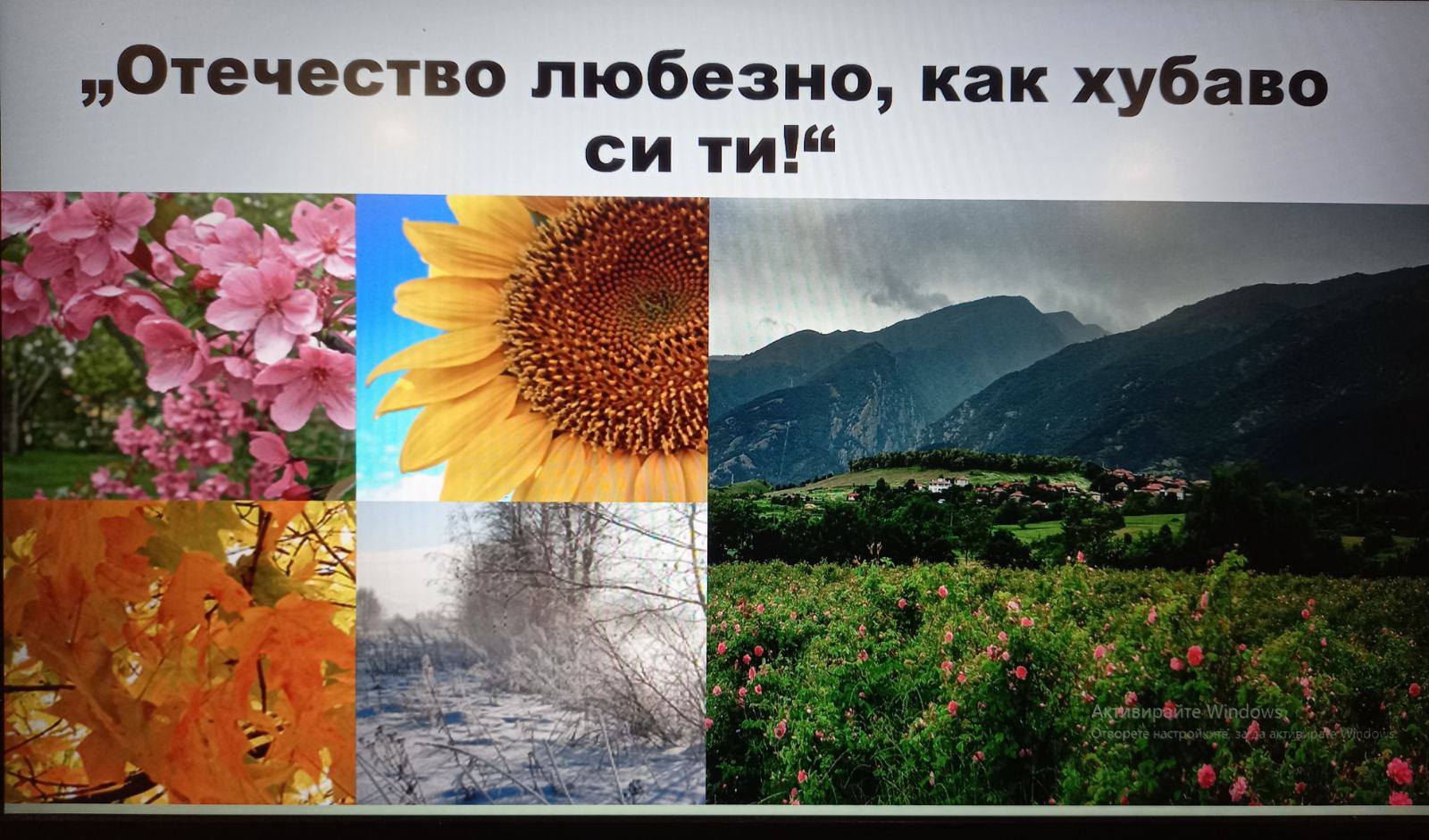 Открит интегриран урок по география и икономика, литература и изобразително изкуство на тема "Природата на България - реалност, символ, вдъхновение" се проведе днес с учениците от VI a клас. Децата работиха в екипи и проявиха интерес и ангажираност към темата. Осъзнаха, че природата не се преживява само физически, а се докосваме до нея чрез литературата и изобразителното изкуство. Едва тогава удивителният й свят се просмуква във всеки от нас.
